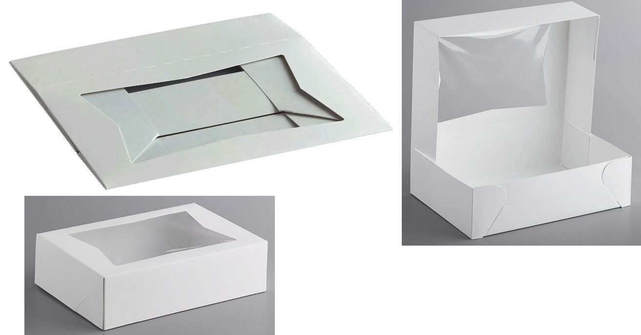 Each box is one piece. Easily foldable into a window cake box. Comes in white.